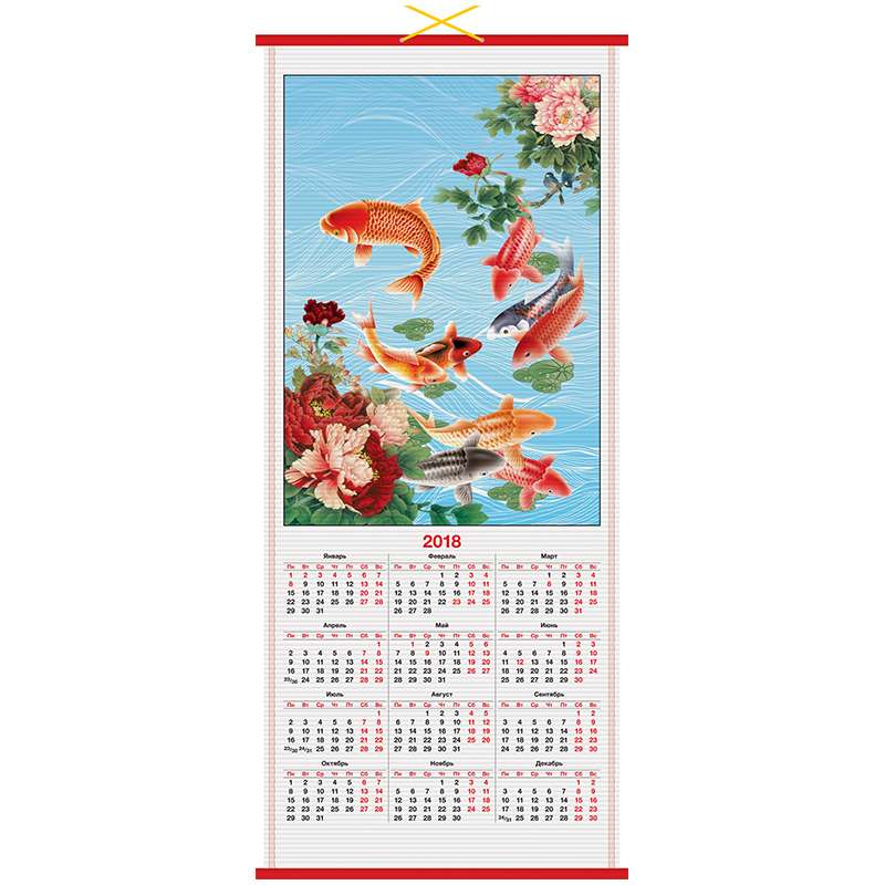 Календарь настенный на 2017 год «циновка». Размер календаря – 320×760 мм. Блок: • Материал – бумажная циновка. • Цветность – полноцветный. • Кол-во блоков – 1.Календарь настенный "циновка" "Золотые рыбки", 2018 г.