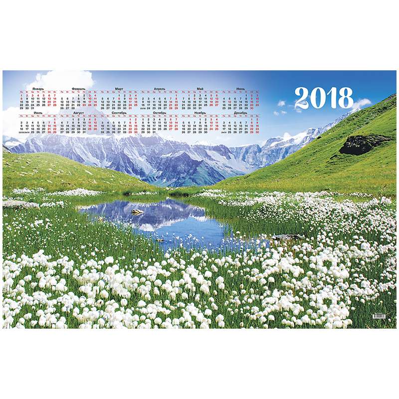 Календарь настенный листовой на 2018 год. Размер календаря – 590×900 мм. Блок: • Материал – мелованная бумага. • Цветность – полноцветный.Календарь настенный листовой А1 "Альпийские луга", 2018 г.
