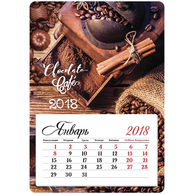 Календарь отрывной на магните на 2018 год. Размер календаря – 95×135 мм. Блок: • Материал – офсетная бумага. • Цветность – 2 краски. • Крепление - склейка Нижняя подложка: • Материал – картон. • Плотность – 380 гр/м2. • Цветность – полноцветная.Календарь отрывной на магните 95*135 мм склейка "Mono - Кофемания", 2018 г.