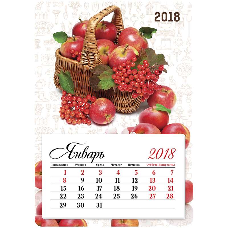 Календарь отрывной на магните на 2018 год. Размер календаря – 95×135 мм. Блок: • Материал – офсетная бумага. • Цветность – 2 краски. • Крепление - склейка Нижняя подложка: • Материал – картон. • Плотность – 380 гр/м2. • Цветность – полноцветная.Календарь отрывной на магните 95*135мм, склейка, OfficeSpace "Mono - Садовый", 2018г.