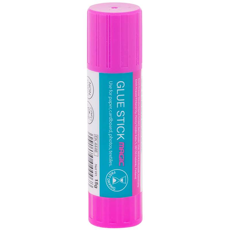 При нанесении оставляет розовыйслед, который постепенно исчезает.В результате вы видите местонанесения клея и можете наносить его более точно и экономично. PVPКлей-карандаш Erich Krause "Magic", 15г, с цветным индикатором