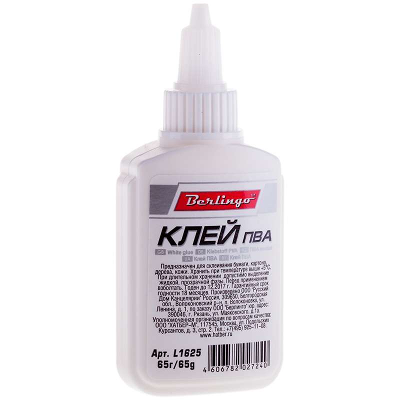 Для склеивания бумаги, картона, дерева, кожи. Не содержит растворителя. Не оставляет следов и легко смывается водой. Удобная пластиковая упаковка с экономичным дозатором. Клей устойчив к резким перепадам температур, выдерживает многократное замораживание и размораживание, сохраняя при этом однородность текстуры и потребительские свойства. Упаковка не деформируется при низких температурах.221932 Клей ПВА L1625 [РЦ]