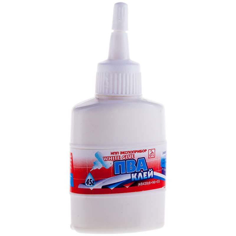 Высококачественный клей используется не только в канцелярских целях, но и в быту для работ по дереву, коже, тканям, стеклу, керамике.Клей ПВА Экспоприбор "Евро", 45г