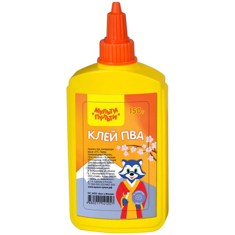 Клей ПВА Мульти-Пульти отлично подходит для создания поделок и работы на уроках труда. Хранить при температуре выше +5 С. Перед употреблением взболтать.Клей ПВА Мульти-Пульти "Енот в Японии", 150г