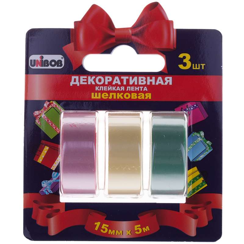 Главная / Товары / КАНЦТОВАРЫ / УПАКОВКА / ХОЗ ТОВАРЫ / РАСХОДНЫЕ МАТЕРИАЛЫ / Канцелярские товары - Офисные / Офисные принадлежности / Клейкие ленты канцелярские / Клейкая лента декоративная 15мм*5м, Unibob, 3шт., разноцветная, шелковая