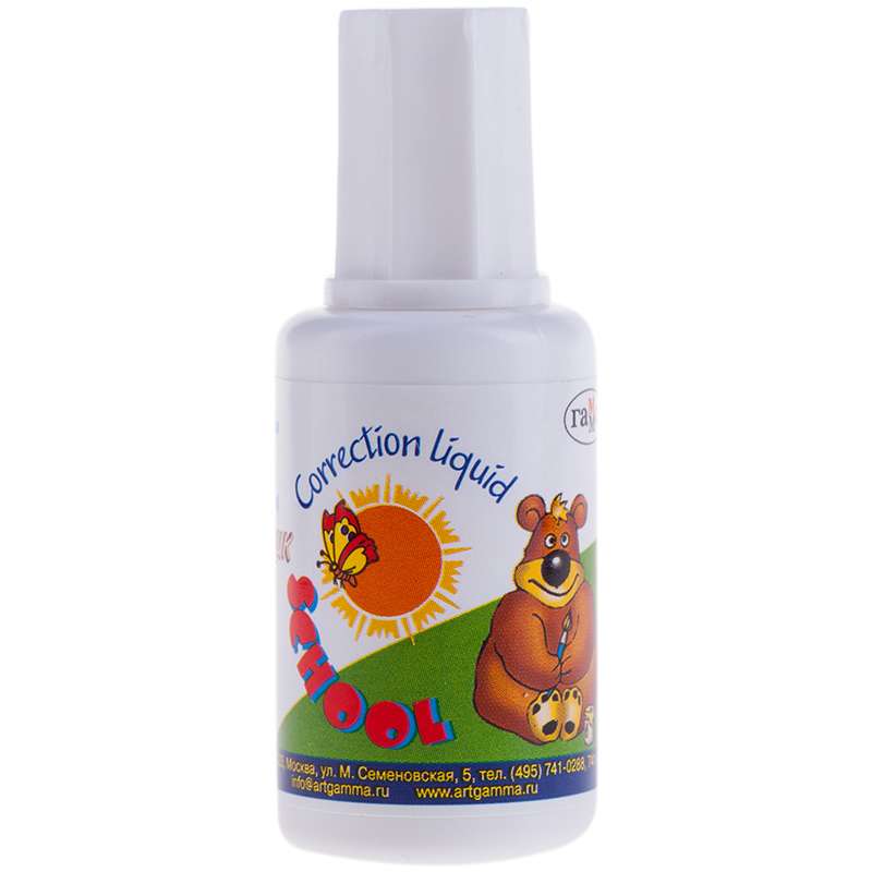 Отлично наносится, подходит для корректировки любого вида текста. На водной основе. Не токсична.Корректирующая жидкость Гамма "Школьник", 20мл, с кистью