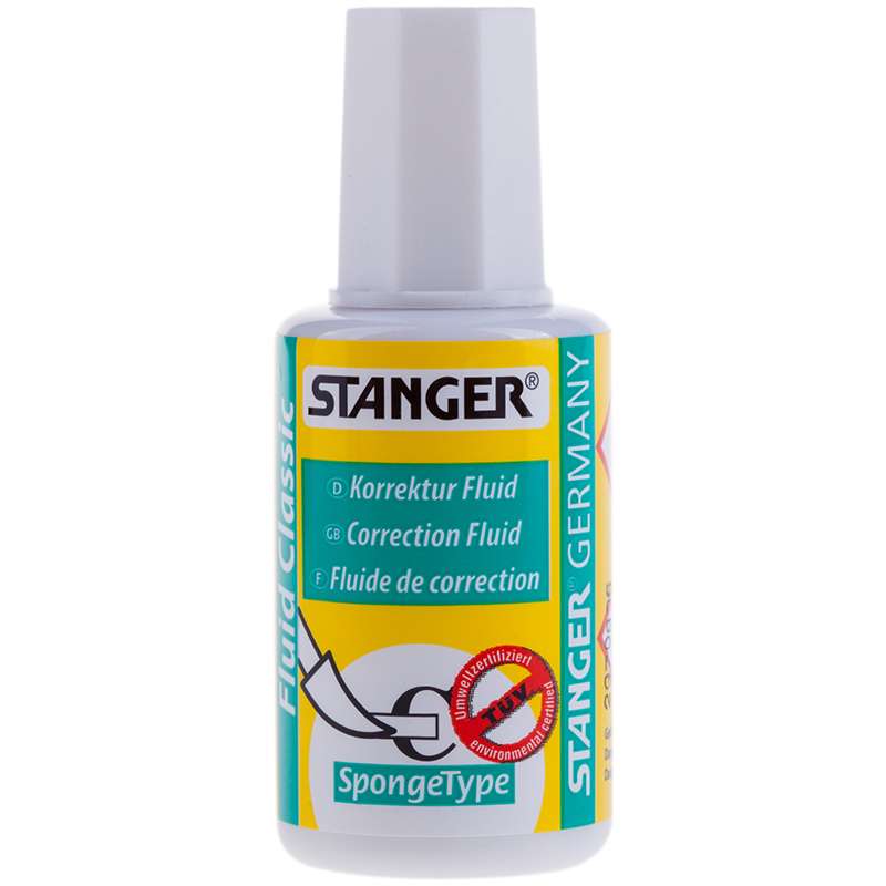 Корректирующая жидкость на спиртовой основе с аппликатором. Объем - 18 мл. Высокая степень покрытия. Быстросохнущая. Подходит для всех видов бумаг.Корректирующая жидкость Stanger, 18мл, с губчатым аппликатором
