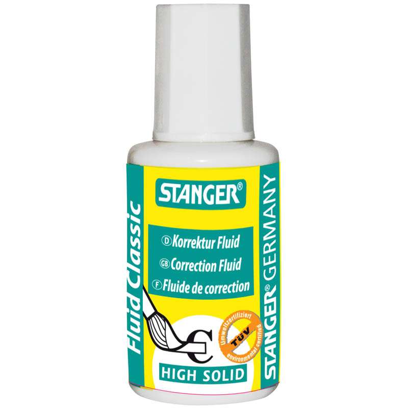 Корректор на химической основе. Объем - 18 мл. Высокая степень покрытия, быстросохнущая, для всех видов правок.Корректирующая жидкость Stanger "Classic", 18мл, с кистью