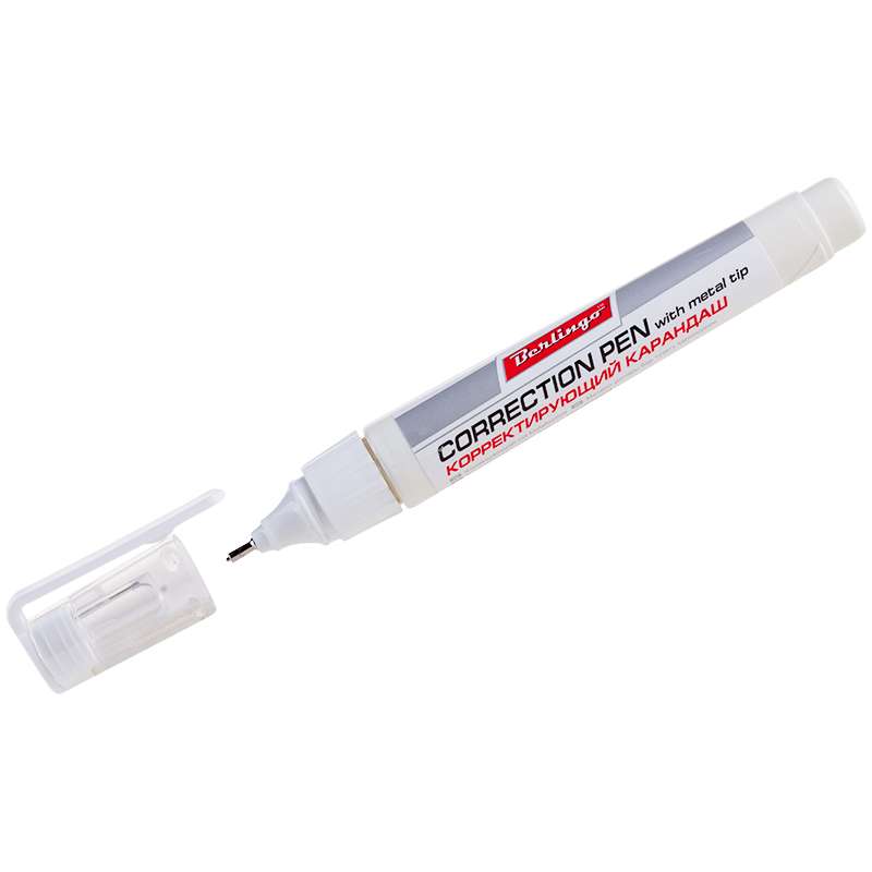 Металлический наконечник. Подходит для машинописного или рукописного текста. Точное нанесение. Надежный колпачок предотвращает засыхание. Моментально высыхает.Корректирующий карандаш Berlingo, 07мл, металлический наконечник