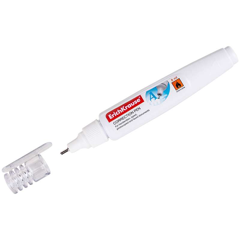 С металлическим наконечником. Для особо точного и аккуратного нанесения корректуры. Объем 8 млКорректирующий карандаш Erich Krause, 8мл, металлический наконечник
