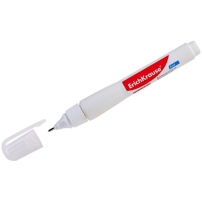 Применяется для точечных и мелких исправлений. Подходит для любого типа бумаги и чернил. Металлический наконечник обеспечивает оптимальную подачу корректирующей жидкости. Перед употреблением хорошо взболтать. Быстросохнущая основа.Корректирующий карандаш Erich Krause "Techno White", 06мл, металлический наконечник, пакет