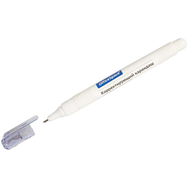 Корректирующий карандаш с металлическим наконечником. Объем - 4 мл. Точное нанесение. Встряхнуть перед применением. Плотно закрыть колпачок после использования.Корректирующий карандаш OfficeSpace, 04мл, металлический наконечник
