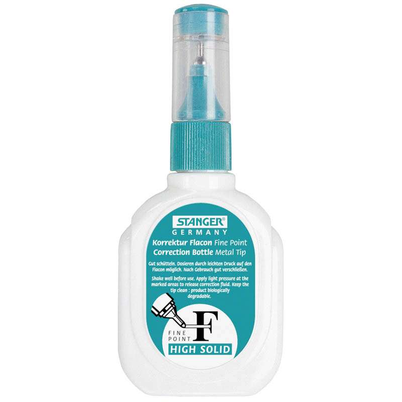 Корректирующая жидкость во флаконе с металлическим наконечником. Удобна для простых точечных правок. Ширина штриха около 1 мм. Быстро сохнет, легко наносится. Не содержит вредных и токсичных элементов, не вызывает аллергических реакций.Корректирующий карандаш Stanger 16мл, металлический наконечник