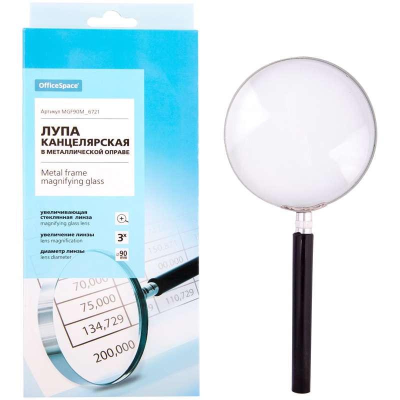 Главная / Товары / КАНЦТОВАРЫ / УПАКОВКА / ХОЗ ТОВАРЫ / РАСХОДНЫЕ МАТЕРИАЛЫ / Канцелярские товары - Офисные / Офисные принадлежности / Мелкоофисные принадлежности / Лупы / Лупа OfficeSpace, 90мм, 3-х кратное увеличение, в металлической оправе, карт. коробка, европодвес