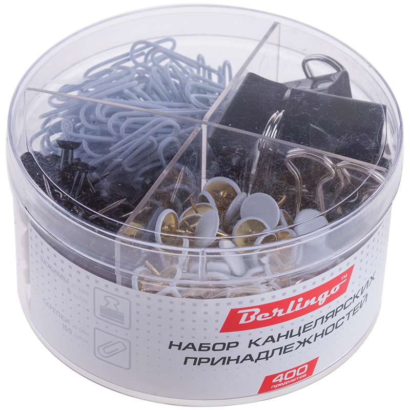 Главная / Товары / КАНЦТОВАРЫ / УПАКОВКА / ХОЗ ТОВАРЫ / РАСХОДНЫЕ МАТЕРИАЛЫ / Канцелярские товары - Офисные / Офисные принадлежности / Мелкоофисные принадлежности / Наборы мелкоофисных принадлежностей / Набор мелкоофисных принадлежностей Berlingo, 400 предметов, пластиковая упаковка