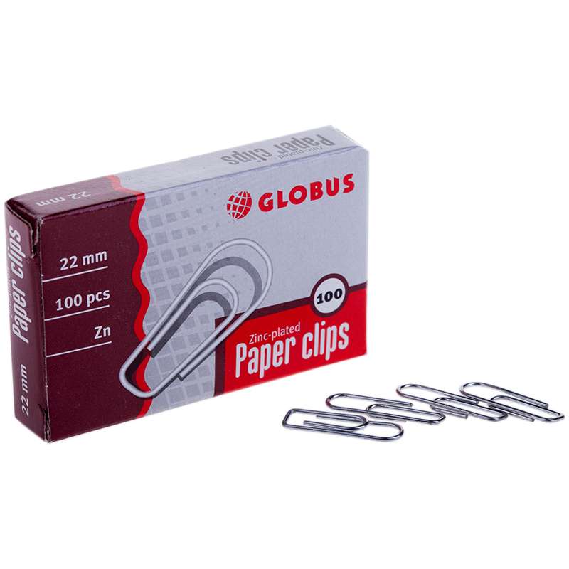 Металлические канцелярские скрепки. Гладкие, оцинкованные, стандартной формы. Надежно скрепляют документы, не деформируют бумагу. Размер скрепки - 28 мм. Упаковка в картонную коробочку по 100 шт.Скрепки 22мм, Globus, 100шт., оцинкованные, карт. упак.