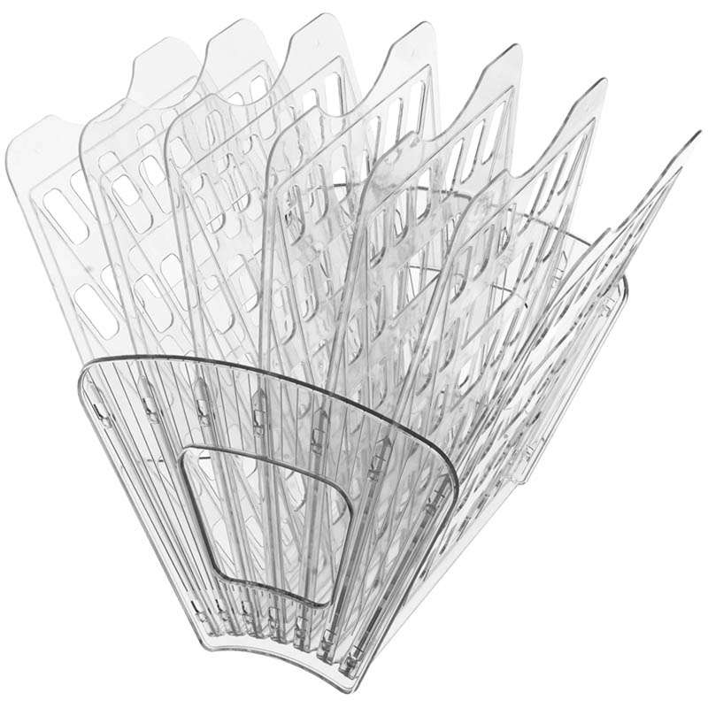 Современный элегантный дизайн. Индивидуальная боковая поверхность. Специальные отверстия для крепления на стену. Возможность горизонтального и вертикального расположения. Сборно-разборная конструкция. Экономичен при транспортировке и храненииЛоток для бумаг веерный Стамм, 7-ми секционный, прозрачный