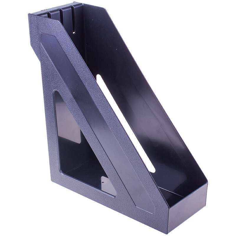 Фактурная поверхность. Подходит для хранения тяжелых каталогов и папок. Ширина 100 мм. На торце лотка есть захват для удобного вытягивания его с полки.Лоток для бумаг вертикальный Стамм "Базис", черный