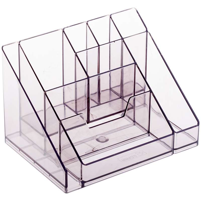 Удачное сочетание вместительности и компактности размеров. Прочный корпус, гладкая глянцевая поверхность. 9 отделений позволяют хранить множество канцелярских мелочей и пишущих принадлежностей. Высота подставки - 105 мм. Прочный корпус изделия изготовлен из полистирола.065010 Настольная подставка Стамм "Каскад", тонированный серый ОР14 [РЦ]