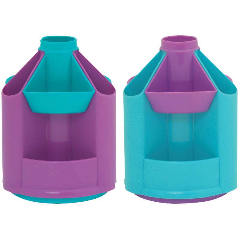 Пластиковый вращающийся настольный органайзер, без наполнения. 10 отделений для канцелярских принадлежностейНастольная подставка Стамм "Mini Desk", вращающаяся, бирюзовый/фиалковый