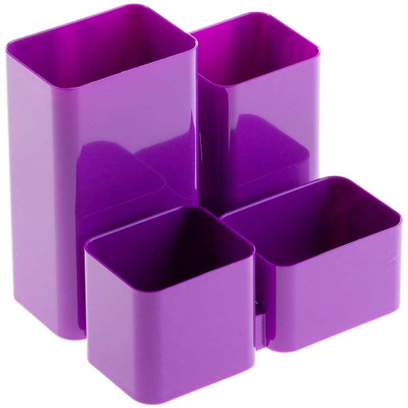 Подставка отличается удачным сочетанием вместительности и компактности, 4 отделения для канцелярских принадлежностей, гладкая глянцевая поверхность.Настольная подставка Стамм "Юниор. Intensive", ассорти