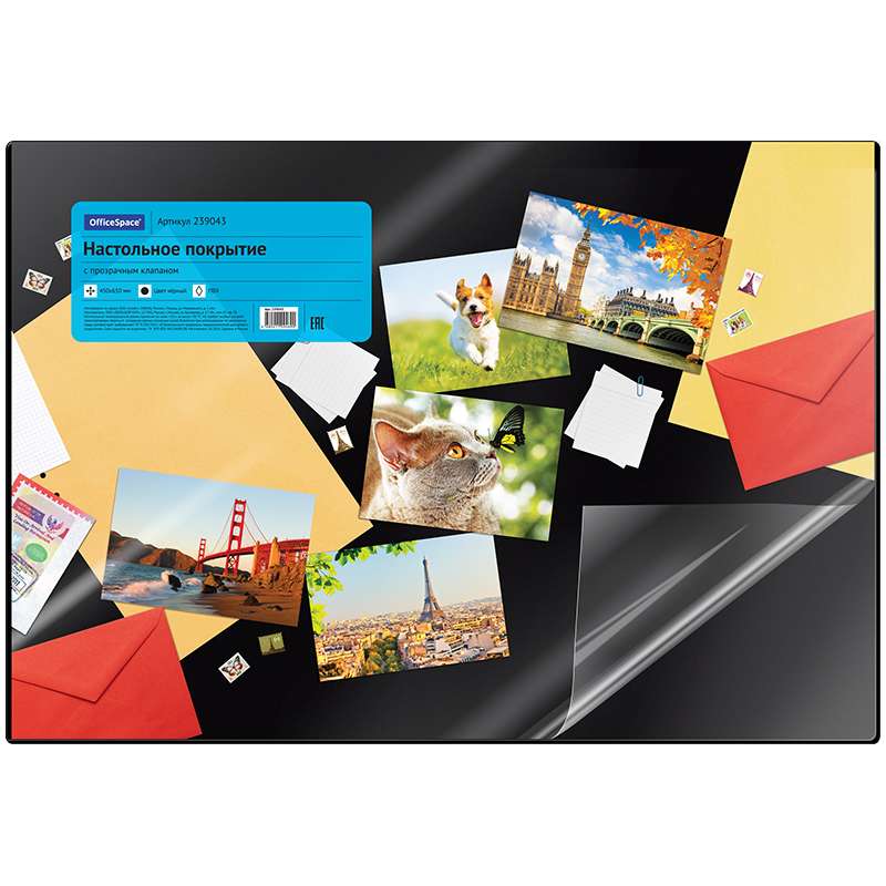 Главная / Товары / КАНЦТОВАРЫ / УПАКОВКА / ХОЗ ТОВАРЫ / РАСХОДНЫЕ МАТЕРИАЛЫ / Канцелярские товары - Офисные / Офисные принадлежности / Настольные покрытия офисные / Настольное покрытие OfficeSpace 45*65см, черный, с прозрачным клапаном