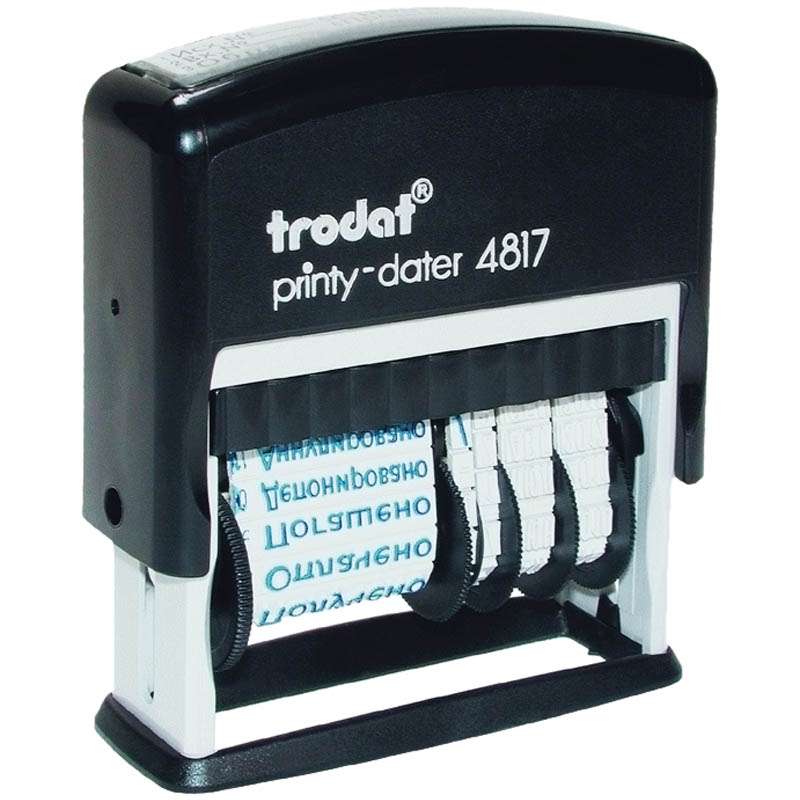 Мини датер с 12 бухгалтерскими терминами: ИСХ.№, ВХ.№, ОБРАЗЕЦ, ОРИГИНАЛ, СРОЧНО, ПРОВЕРЕНО, ПОЛУЧЕНО, ОПЛАЧЕНО, ПОГАШЕНО, ДЕПОНИРОВАНО, АННУЛИРОВАНО, КОПИЯ.Датер ленточный Trodat, с 12 бухгалтерскими терминами, пластик, 1стр., 3,8мм, банк, русский