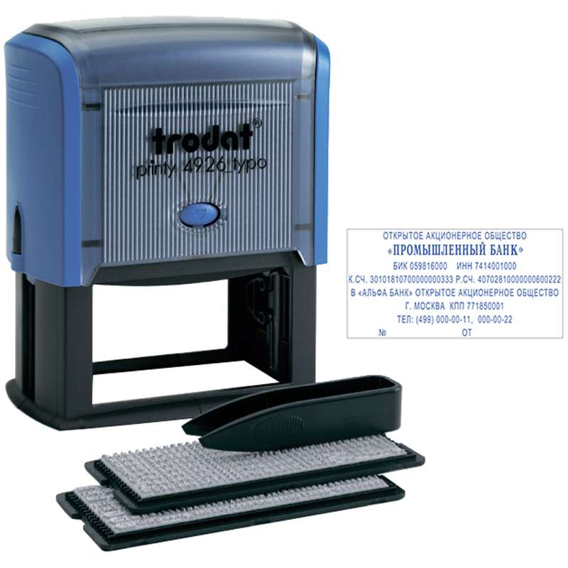 Главная / Товары / КАНЦТОВАРЫ / УПАКОВКА / ХОЗ ТОВАРЫ / РАСХОДНЫЕ МАТЕРИАЛЫ / Канцелярские товары - Офисные / Офисные принадлежности / Штемпельные принадлежности / Штампы / Штамп самонаборный Trodat, 8стр., 2 кассы, пластик, 75*38мм