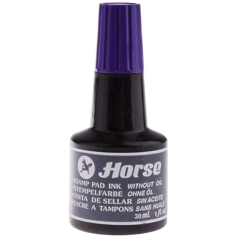 Штемпельная краска предназначена для перезаправки штемпельных подушек. Цвет краски - фиолетовый. Объем пузырька - 30 мл.Штемпельная краска Horse, 30мл, фиолетовая