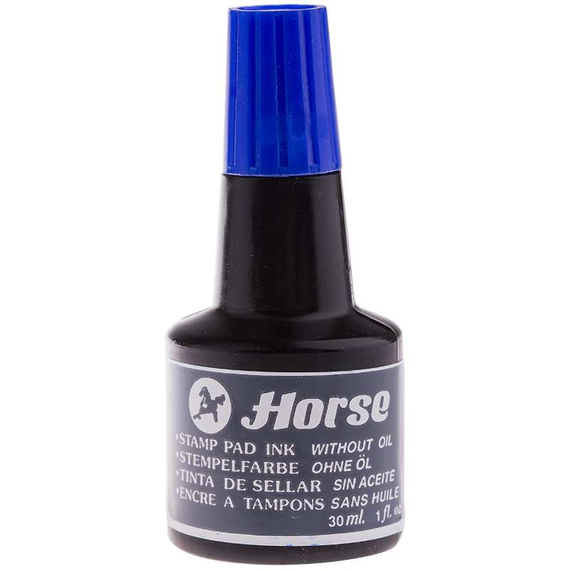 Штемпельная краска предназначена для перезаправки штемпельных подушек. Цвет краски - синий. Объем пузырька - 30 мл.Штемпельная краска Horse, 30мл, синяя