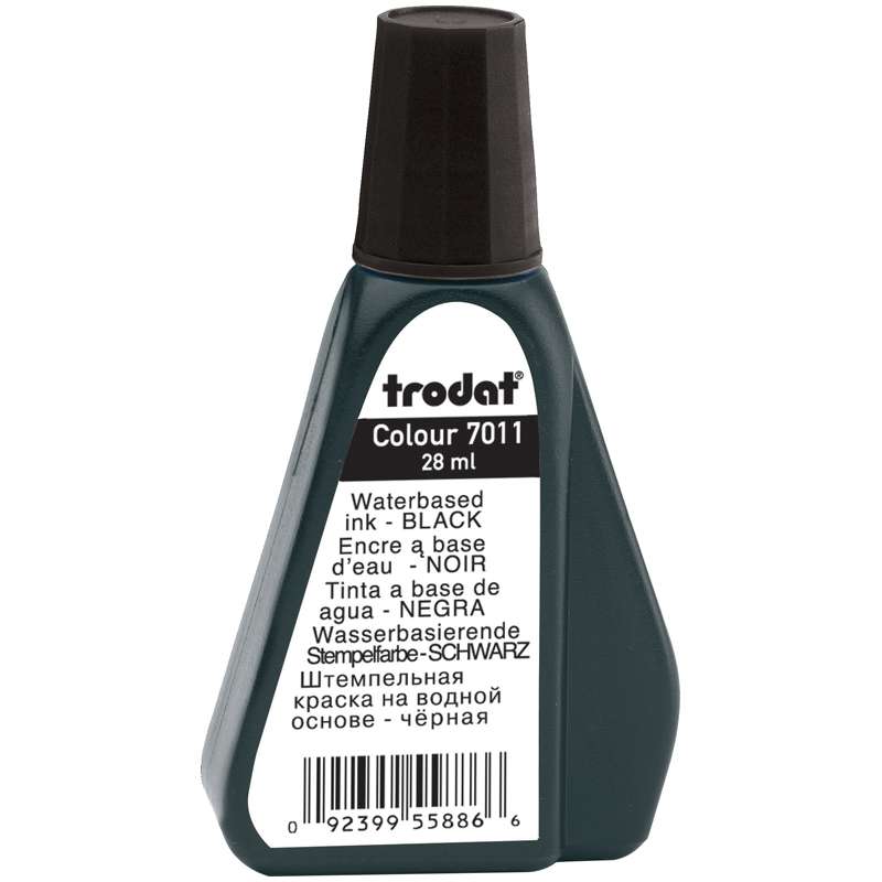 Штемпельная краска на водной основе для заправки штемпельных подушек. Цвет краски - черный. Объем 28 мл.Штемпельная краска Trodat, 28мл, черная