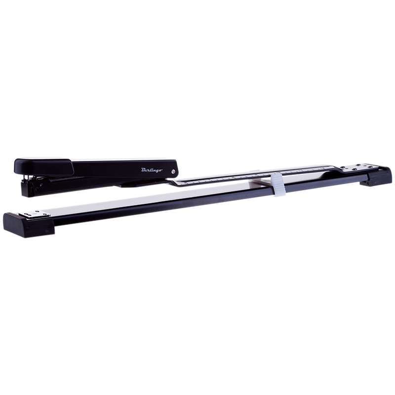 Корпус - металл, антискользящая накладка из пластика. Механизм из металла. Вмещает 210 скоб №24/6, 26/6, 2 типа скрепления. Сшивает до 20 листов. Глубина захвата - 310 мм. Идеально подходит для скрепления крупноформатных документов.Степлер брошюровочный №24/6, 26/6 Berlingo до 20л, металлический корпус, черный