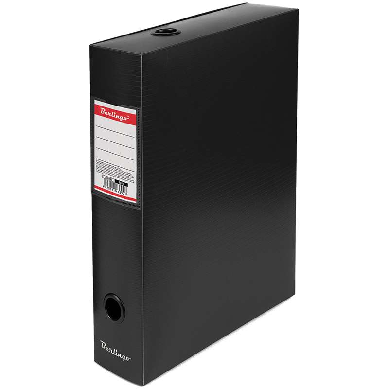 Короб архивный Berlingo изготовлен из полипропилена черного цвета толщиной 0,9 мм. Предназначен для краткосрочного хранения документов. Имеется наварной карман со сменным информационным ярлыком для маркировки. Закрывается на кнопку. Кольцо на корешке для удобства захвата. Ширина корешка 70 мм.Короб архивный на кнопке Berlingo разборный, пластик, 70мм, черный