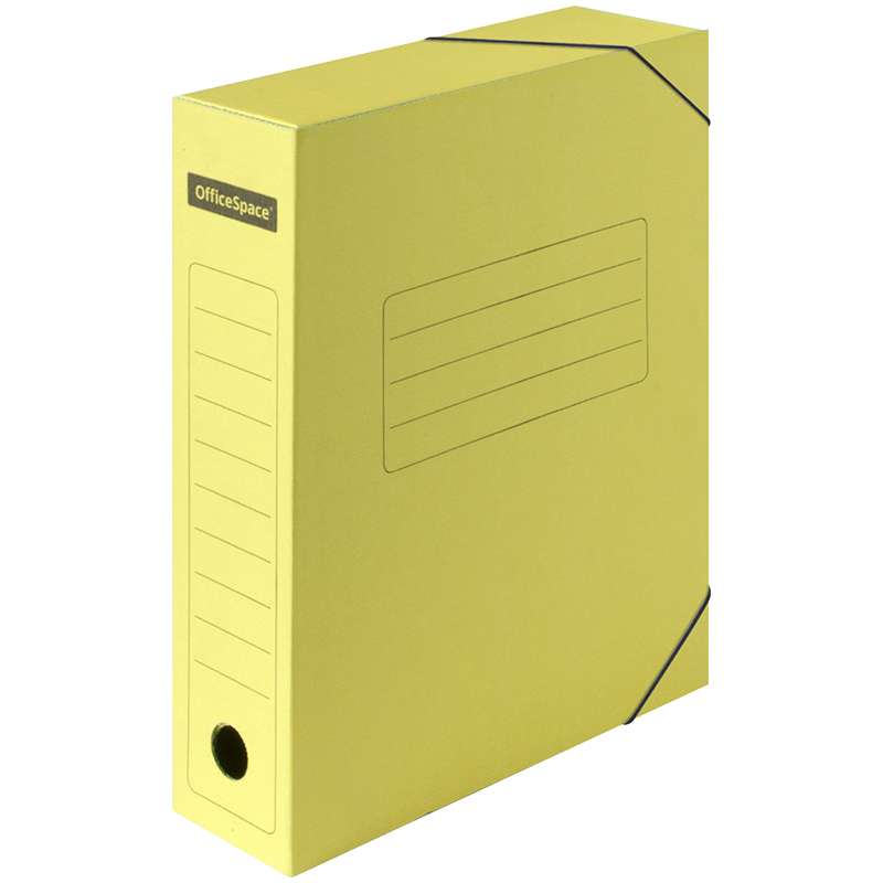 Папка архивная из микрогофрокартона на резинках. Материал - микрогофрокартон. Ширина корешка -75мм. Цвет - желтыйПапка архивная из микрогофрокартона OfficeSpace на резинках, ширина корешка 75мм, желтый
