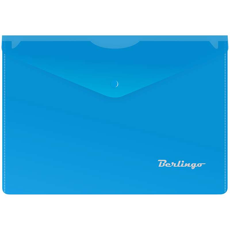 Яркие насыщенные цвета. Предназначена для хранения любых документов А5. Кнопка рассчитана на ежедневное использование.Папка-конверт на кнопке A5+ Berlingo, 180мкм, синяя