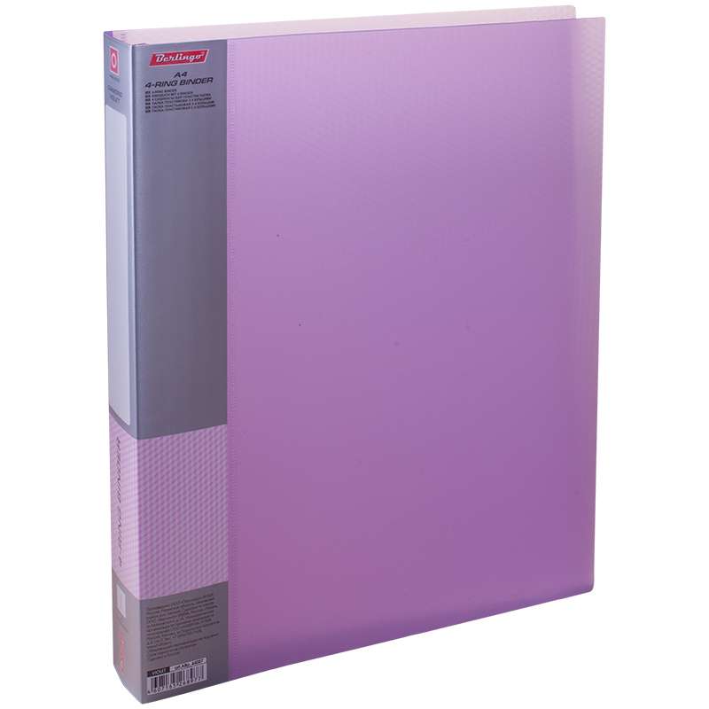 Для хранения перфорированных документов, изготовлена из пластика. Кольцевой механизм надежно держит документы. В ассортименте классические офисные цвета.173878 Папка на 4-х кольцах Berlingo "Diamond", 40мм, 700мкм, фиолетовая ABp_44007 [РЦ]