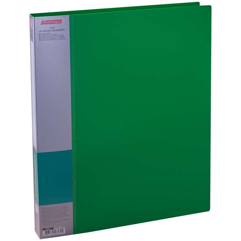 Надежный кольцевой механизм. Материал - плотный пластик. Сменная этикета для маркировки на корешке, дополнительный внутренний карман. Яркие насыщенные цвета. Индивидуальная упаковка в пленку.Папка на 4-х кольцах Berlingo "Standard", 25мм, 700мкм, зеленая