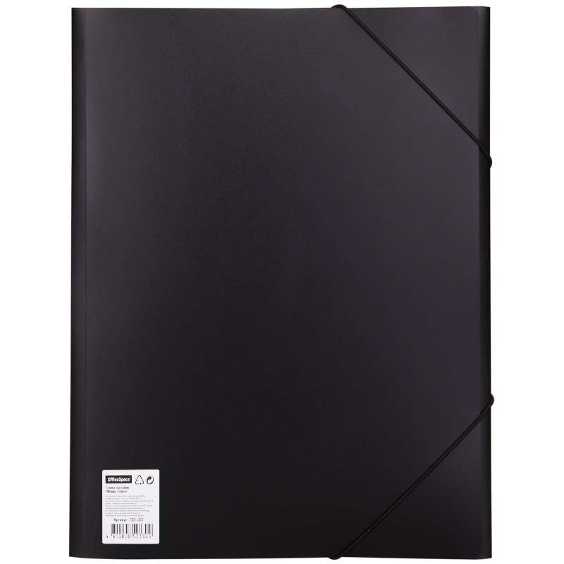 Для хранения и транспортировки документов формата А4. Надежно защищают бумаги от изломов, пыли, влаги. Закрывается с помощью двух эластичных резинок, закрепленных по углам. Свободно помещается в портфеле, кейсе, багаже.Папка на резинке OfficeSpace А4, 500мкм, черная