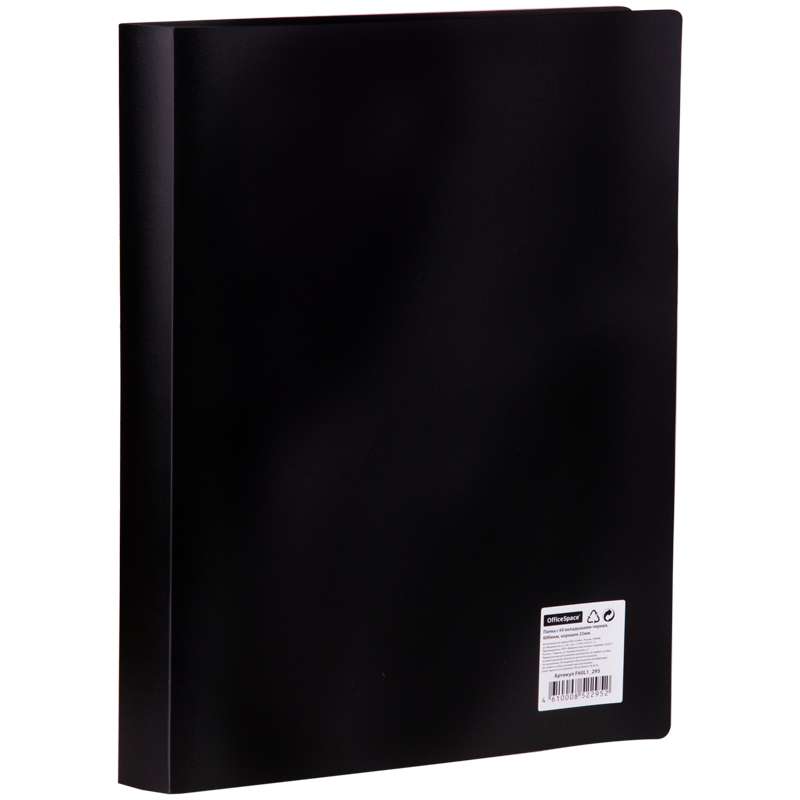 Изготовлена из качественного пластика, толщиной 0,6 мм. Папка с прозрачными листами-карманами рекомендуется для хранения материалов и документов, требующих упорядоченности и наглядного обзора. Документам не требуется перфорация дыроколом.158495 Папка "OfficeSpace" с 60 вкладышами, 25мм, 600мкм, черная F60L1_295 [РЦ]