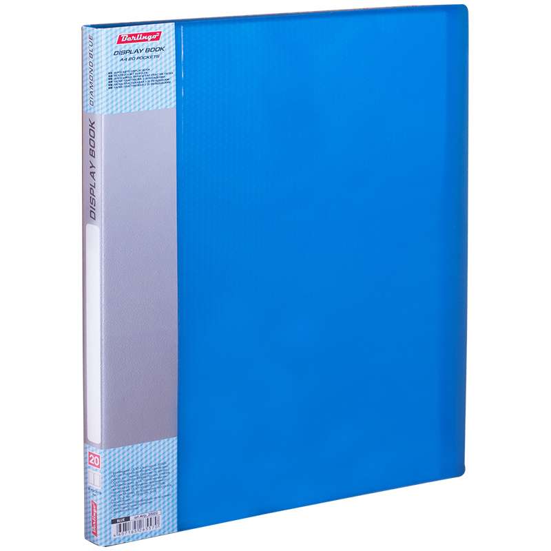 Функциональная папка с прозрачными вкладышами удобна для хранения и демонстрации документов формата А4. На папках предусмотрена сменная этикетка на корешке для маркировки. Изготовлена из фактурного полупрозрачного пластика. Индивидуальная упаковка в пакет.175730 Папка "Diamond" с 20 вкладышами, 14мм, 700мкм, синяя AVp_20002 [РЦ]