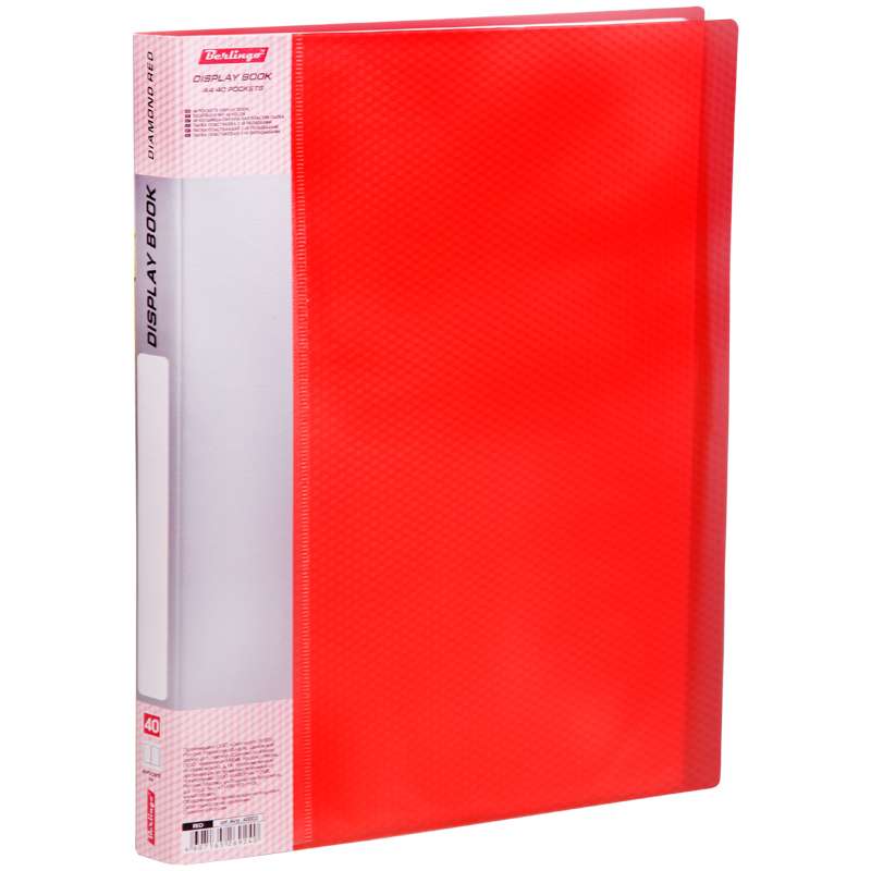 Функциональная папка «Diamond» с прозрачными вкладышами удобна для хранения и демонстрации документов А4. На папках предусмотрена сменная этикетка на корешке для маркировки. Изготовлены из фактурного полупрозрачного пластика. Индивидуальная упаковка в пакет. Изготовлена из плотного пластика (толщина - 0,7 мм).Папка с 40 вкладышами Berlingo "Diamond", 21мм, 700мкм, красная