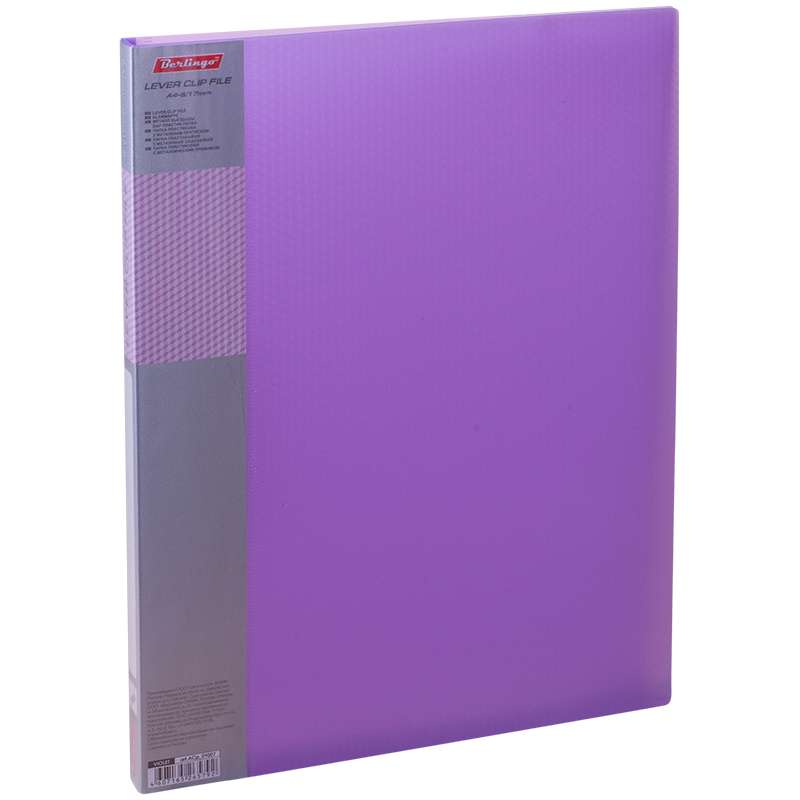 Папка позволяет хранить и переносить документы, защищает их от пыли. Металлический зажим надежно фиксирует документы, не повреждая их. Изготовлена из качественного плотного пластика. В ассортименте полупрозрачные цвета.Папка с зажимом Berlingo "Diamond", 17мм, 700мкм, фиолетовая
