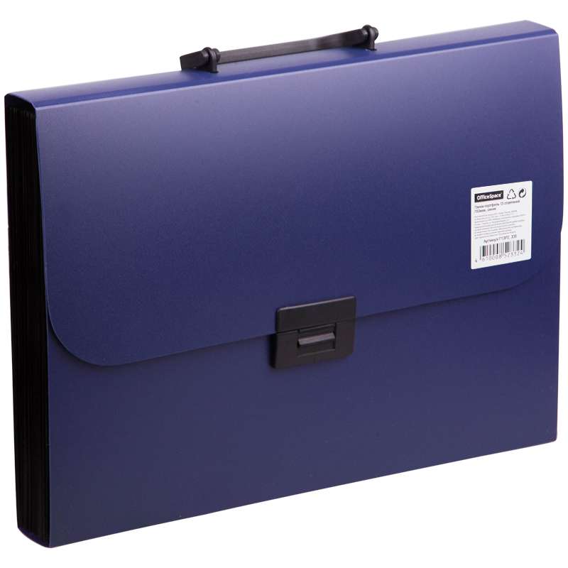Материал - жесткий пластик. 13 отделений. Используется для хранения и перевозки большого количества документов, рассортированных по темам. Популярные офисные цвета.158521 Папка-портфель 13 отделений OfficeSpace®, 700мкм, синий F13P2_335 [РЦ]