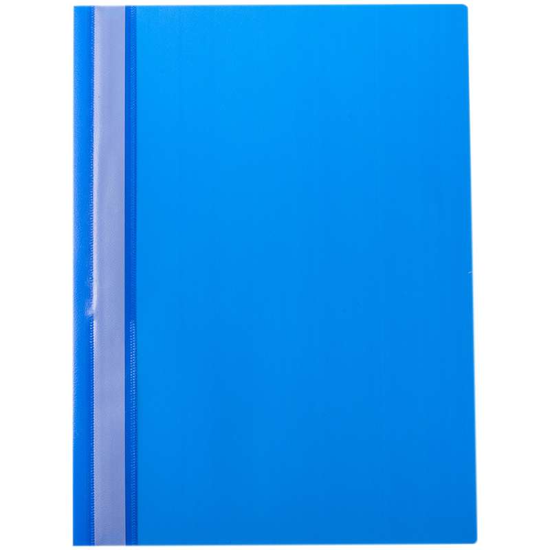 Папка-скоросшиватель с прозрачным верхним листом. Для хранения документов А4. Снабжена универсальной перфорацией. Изготовлена из качественного пластика. В ассортименте яркие офисные цвета.162564 Папка-скоросшиватель пластик. А4, 160мкм, синяя с прозр. верхом Fms16-5_718 [РЦ]
