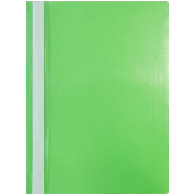 Папка-скоросшиватель с прозрачным верхним листом. Для хранения документов А4. Снабжена универсальной перфорацией. Изготовлена из качественного пластика. В ассортименте яркие офисные цвета.240674 Папка-скоросшиватель пластик. А4, 120мкм, зеленая с прозр. верхом Fms16-3_11691 [РЦ]