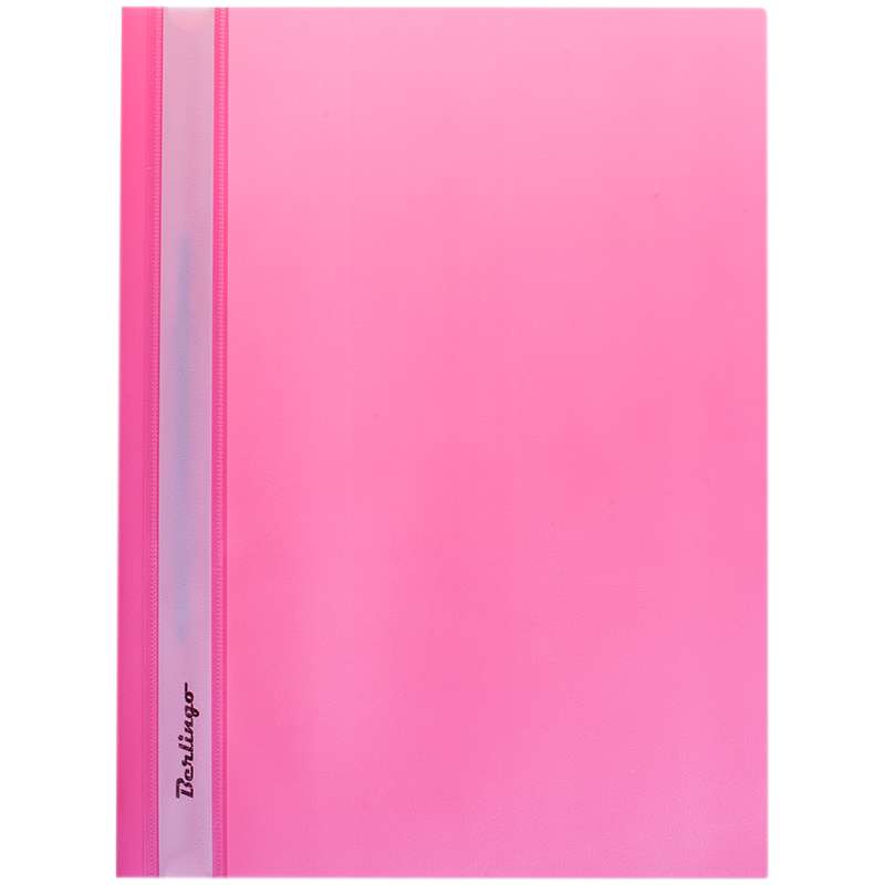 Папка-скоросшиватель с прозрачным верхним листом. Для хранения перфорированных документов формата А4. Изготовлена из плотного пластика. Усиленный пластиковый корешок с индексной полосой для размещения информации.Папка-скоросшиватель пластик. А4 Berlingo, 180мкм, розовая с прозр. верхом