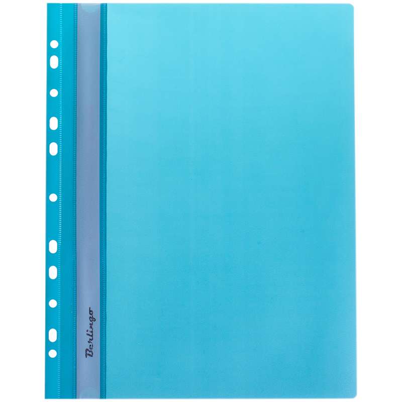 Папка-скоросшиватель с прозрачным верхним листом. Для хранения документов А4. Снабжена универсальной перфорацией. Изготовлена из плотного пластика. Усиленный пластиковый корешок с индексной полосой для размещения информации.Папка-скоросшиватель пластик. перф. А4 Berlingo, 180мкм, бирюзовая