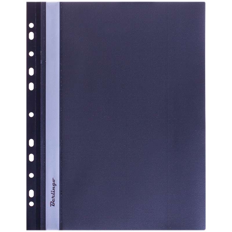 Папка-скоросшиватель с прозрачным верхним листом. Для хранения документов А4. Снабжена универсальной перфорацией. Изготовлена из плотного пластика (толщина – 180 мк). Усиленный пластиковый корешок с индексной полосой для размещения информации.Папка-скоросшиватель пластик. перф. А4 Berlingo, 180мкм, черная