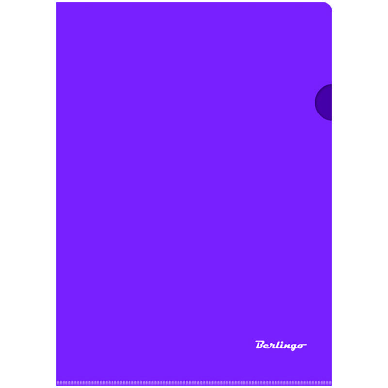 Предназначена для хранения документов А4 фотмата. Изготовлена из плотного пластика толщиной 180 мкм. Боковой вырез для удобного извлечения листов.190097 Папка-уголок А4 Berlingo, 180мкм, прозрачная фиолетовая AGp_04107 [РЦ]
