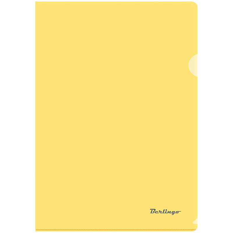 Плотный пластик защищает папку от сминания и других повреждений. Боковой вырез для удобного извлечения документов. Цвета - яркое ассорти, прозрачные.Папка-уголок А4 Berlingo, 180мкм, прозрачная желтая